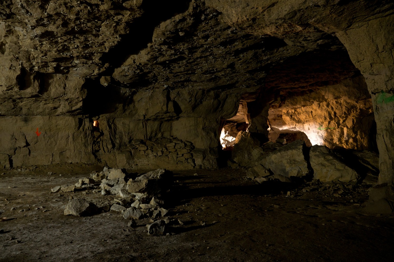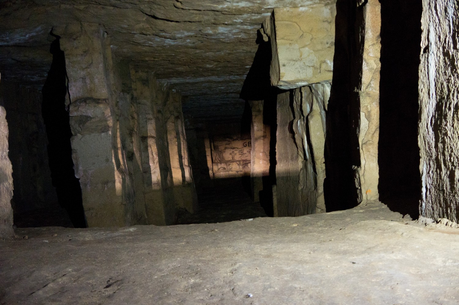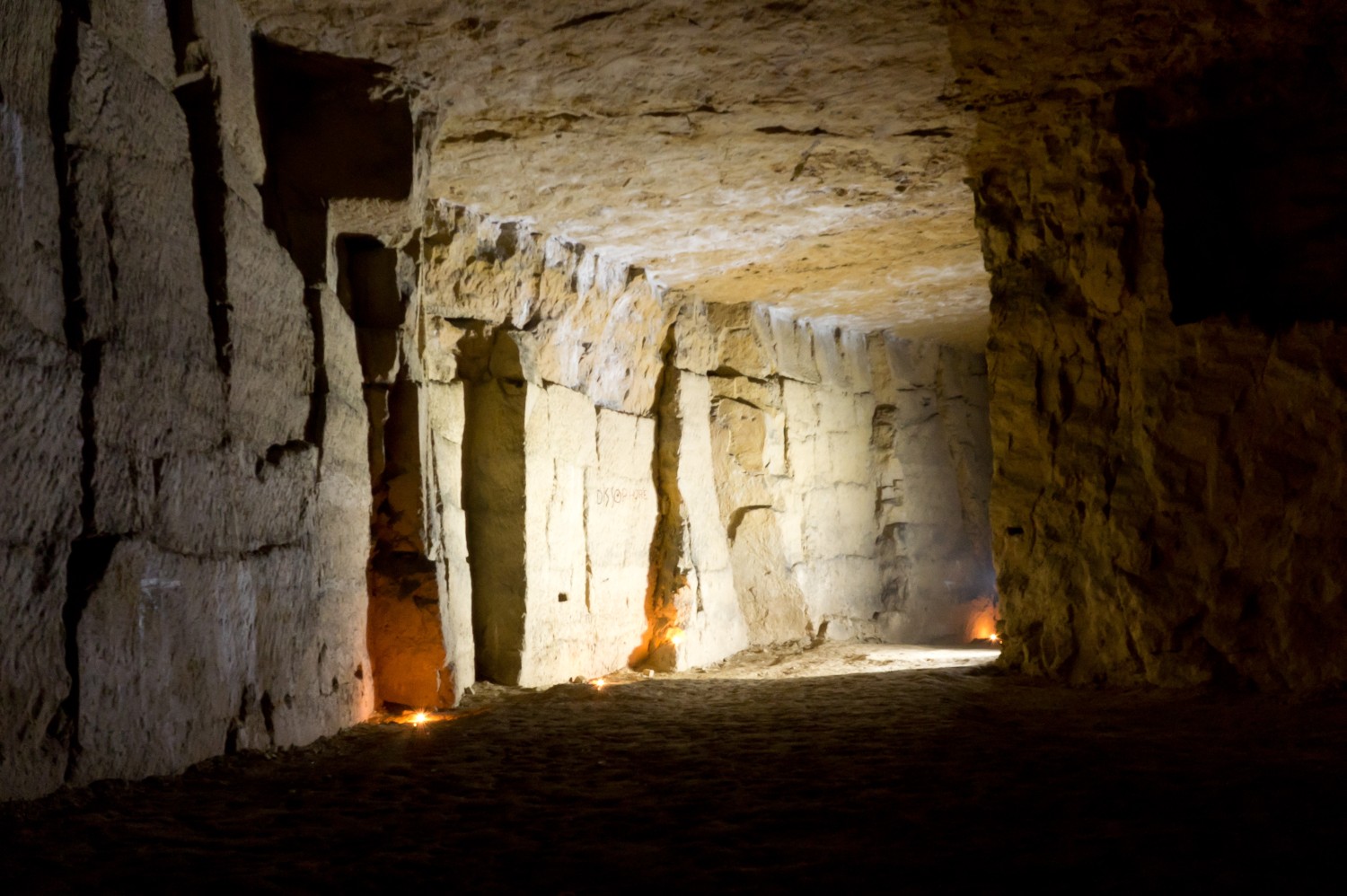 C'est un ensemble de trois carrières. La première aux vastes paysages de piliers tournés, en partie inondée, dans laquelle se déverse les égouts quand il pleut un peu trop.